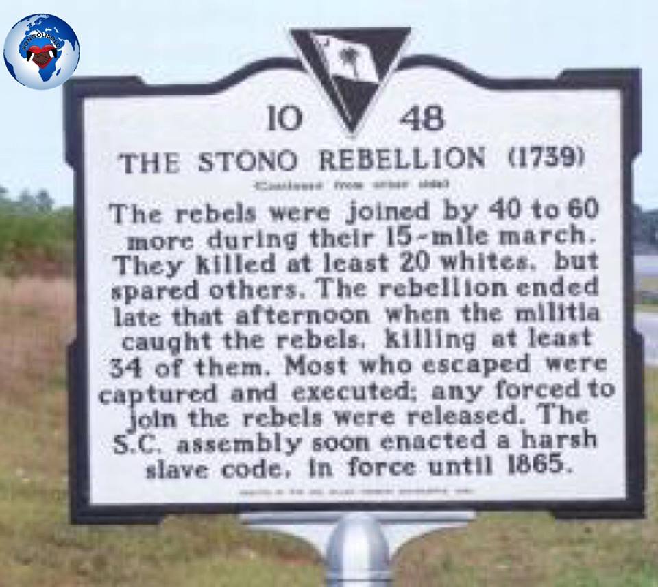 - Le 9 septembre 1739, en Caroline du Sud un esclave Kongo connu sous le nom de Jemmy fut à la tête d’un soulèvement d’esclaves connu comme « The Stono Rebelion Of 9 Septembre 1739 », considéré comme le plus grand soulèvement d’esclaves dans toute l’histoire de l’Amérique du nord;